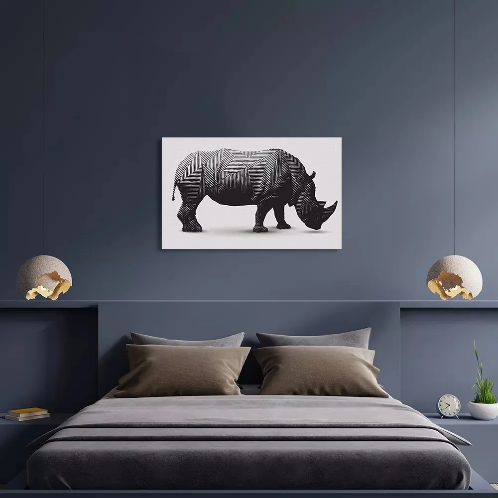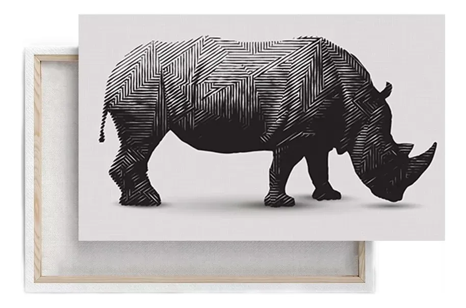 Cuadro Canvas Minimalista Rinoceronte Moderno Negro Blanco